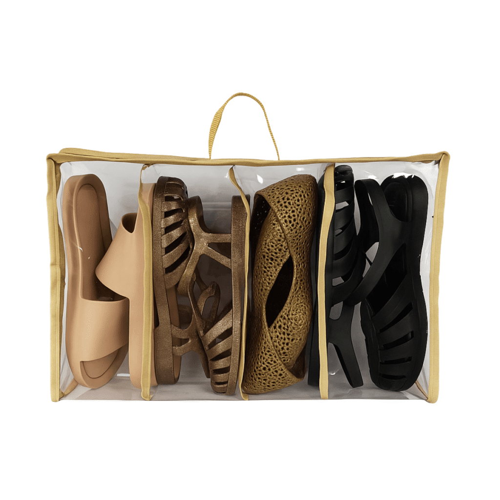 Para otimizar o espaço destinado a sapatos, tênis e sandálias, as colmeias oferecem uma solução prática. Você pode usar uma colmeia de gaveta para separar cada par, facilitando a visualização e preservando os calçados de danos.